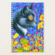 Planner featuring Louis Wain’s animal painting Cat in Sea of Flowers (1860-1939). A black and white cat with golden eyes smells yellow flowers. In the purple background are blue flowers. A wonderful gift for cat lovers and English art.