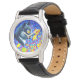 Watch featuring Louis Wain’s animal painting Cat in Sea of Flowers (1860-1939). A black and white cat with golden eyes smells yellow flowers. In the purple background are blue flowers. A wonderful gift for cat lovers and English art.