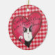 Cat in Heart on Red & White Gingham Ceramic Tree Decoration