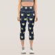 Cat In Sun Glasses And Dot On White Yellow Navy Capri Leggings