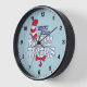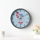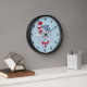 The size of the clock is dramatic and the abstract alcohol ink design is soothing and intricate at the same time. I chose the black frame that adds pop to the blue and gold design. The gold printing would be better in a slightly darker or larger font. I love it and I’m looking for just the right place in ny new apartment. I would recommend this clock for a personal gift or a present. I feel that the quality is excellent for the money! I’m a bit of a clock nut so I’m pretty particular about my purchases. The clock is larger in diameter than many if the clocks I have, so it stands out very well. I think a slightly darker printing color and a moderately larger size would best suit a professional decor or add more impact in a work place item.