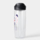 The bottle looks even better in real life. The ice cubes I put in lasts all day! I have my bottle with me all the time. It's summer and having something cold to drink feels amazing. With this bottle I always have something super cold. I have only tried the hot drink once and it lasted a long time as well. The color blue is a navy blue and the white printed on it is vibrant. It printed perfectly. I love my personalized smile water bottle.