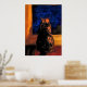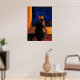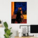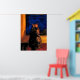 This poster features a gorgeous golden, orange and brown tortoiseshell cat sitting on a red pillow, staring out the window into a midnight blue sky. She casts a shadow on the gold coloured wooden windowsill. I have digitally enhanced my original photograph to achieve a painterly effect.