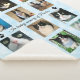 This beautiful cat loss memorial blanket features a blue and white sky and cloud pattern as the background for your twelve photos. In the middle of the photos are the words, "In Loving Memory of (Name)." A little cat paw appears right before and after the words. This memorial cat blanket will be a treasured keepsake for years to come. Copyright Peaches the Tuxedo Cat