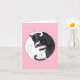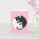 Pink card with two sleeping cats entwined into a circle. A black cat and a white cat. Attention: This is a blank card, so if you want text you must write your own!