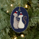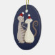 Cute, cartoon, cats love couple red and navy blue Christmas ornament.