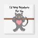 Great humourous cat design magnet. A cool cat hanging on a bar with a pink heart in front of him. A cute saying 'I'd hang anywhere for you'