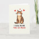 This card features a centered tabby cat with orange and caramel fur and neat black stripes, shown from the front in a balanced pose. The cat has a white belly and muzzle, closed eyes, and a small smile that feels like a sweet “slow blink” of affection. Its tiny pink nose and long whiskers stand out against the simple off-white background. Above the cat’s head, three red hearts float in a row to highlight the loving mood ❤️. Near the bottom of the card, the message reads “I SLOW BLINK YOU SO MUCH.” The words “I SLOW BLINK” are in black block letters, while “YOU SO MUCH” is in red block letters, making the punchline easy to spot 💌🍫. It’s a warm, cat-lover way to say you care, so pass it along and share your Valentine’s Day feelings with someone special.