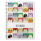 Vintage, cute, kawaii, colourful pattern, funny cats notebook for school.