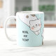 This cute mug with cute little lazy sleeping cat in blue makes the perfect gift for all cat lovers. Easily personalise all the text. You can type in up to 3 different notes or leave all the same. Please visit the store for the full line of products that are available :) - Kate Eden Art
