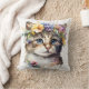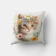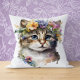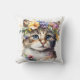 Cat Lover Gift - Watercolor Cat with flowers Cushion