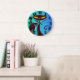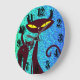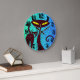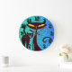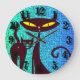 Cat Lover Illustration in Aqua Blue Background Large Clock