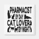 This adorable text design featuring the phrase "Pharmacist by Day Cat Lover by Night" and cute cat profiles is perfect for any pharmacist who loves cats.
