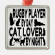 This adorable text design featuring the phrase "Rugby Player by Day Cat Lover by Night" and cute cat profiles is perfect for any rugby player who loves cats.