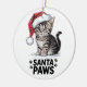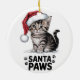 This adorable 'Santa Paws' ornament features a wide-eyed tabby kitten with a Santa hat, perfect for cat lovers and holiday enthusiasts. The playful design with the phrase 'Santa Paws' and paw prints adds a festive and humourous touch to holiday attire.
