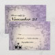 This rsvp features a whimsical design of cats amid vines and scrollwork. Lavender accented with lights.
