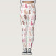 These cute leggings have a pattern of pink, tan, and brown cats on a white background. Perfect for any cat lover! Graphics by Prettygrafik Design, © Prettygrafik.com