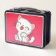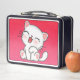 This is a standard metal lunchbox that appears to work just fine. We designed this box ourselves with an uploaded photo and custom text on the front and back. It looks absolutely beautiful except the front of the lunchbox is not centered like it shows in the photo. The print borders don't align with the inset flat part of the box where the preview photo online showed it perfectly centered in there. The back looks nice and centered though.