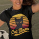 A black cat silhouette is featured against a stylised retro sunset, with the words Cat Mama written beneath it in a vintage font. The design is perfect for cat lovers who want to express their love for their feline companions.