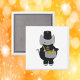 Are you looking for a gift for the percussionist in your life? This cute magnet features a grey cat playing the snare drum while wearing a black and gold marching band uniform.