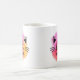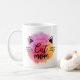 Cute coffee mug for any cat lover featuring the wording "Cat mum" in modern black lettering over a colourful watercolor splashes background and decorated with lovely cat ears and adorable whiskers.