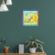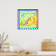 Cat Nap cat is doing what cats do best - napping. This kitty makes an adorable poster. She is wearing an adorable pink top with stars and aqua striped sleeves. The moon is hanging above Cat Nap kitty, watching over with a smile. Kitty also has a blissful smile so you know that he is having sweet dreams. Text of “Cat Nap” is on a lime green background sprinkled with yellow stars and pink dots. The image is enclosed with a colourful whimsy border. Cat Nap cat is one of 10 cats from the fabric collection “Meow Meow” by Phyllis Dobbs. You may also like these other POSTERS