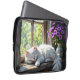 Cat Napping on the Window Sill | Purple Flowers Laptop Sleeve
