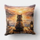 The golden glow of sunset spreads across the water as birds fly overhead. Sitting and watching is a cat positioned between a pile of ropes used to dock a boat and a single lantern. It seems like he is watching for his sea faring human to return before the sun reaches the edge of the water and disappears for another day as night falls.