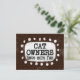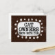 "Cat Owners Have More Fun" is a cute text design in brown with black text, along with a white accent shape and white textured whimsical dots surrounding it.