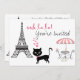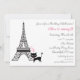 Personalised Cute Cat Paris Birthday Party Invitation. This invite features an adorable cat in Paris with the Eiffel tower and a cafe table.