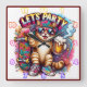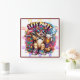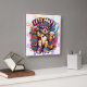 Cat partying with skateboard and drink square wall clock