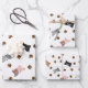 These cute sheets of wrapping paper have a cat pattern with grey, black, brown & pink kitty faces and paw prints against a white background.
