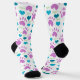 Are you looking for a gift for the cat lover in your life? They'll love these socks that have a pattern of pink cat paws, blue hearts and green meows.