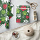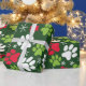Cat Paw Prints and Snowflakes Red Green Christmas Wrapping Paper