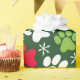 Wrap up holiday gifts for your favourite kitty with this Christmas wrapping paper that features a festive pattern of cat paw prints and snowflakes in red, green and white.