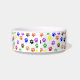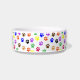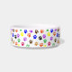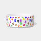 This is a heavy, durable bowl decorated with Tibbies of many colors, the perfect size for hungry/thirsty Tibs. The design is interesting and printing clear.