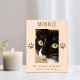 Elegant laser-etched wood photo frame to honour the memory of your beloved cat featuring the heartfelt inscriptions "In Loving Memory" and "Forever in Our Hearts" in classic serif typography, cat paw prints, and their name in clean, simple lettering.
