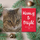 Cute Christmas photo card. Replace the photo with your own cat and change the name and year. Easy to do from the product page. White Meowy and Bright typography on red background. A fun card to give friends and family this holiday season.