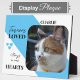 This sweet keepsake features a charming pet photo with a blue, white and black colour scheme and sprinkled with love hearts.