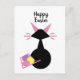 Cat Pink Kitty Retro Whimsical Graphic Happy Easter Postcard. Simple semi abstract black and pink Easter kitty cat with tail wrapping around colourful Easter eggs as basket. Hand lettering font says "Happy Easter." Option to change, delete or keep text. Design nod to mid century modern mcm. Step by Step Inspiration Series available exclusively on Zazzle at zazzle.com/store/KrisHarty, designed by international designer, Kris Harty. © 2020 Kris Harty Step By Step Inspirational Designs