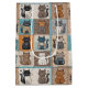 Colourful quilted squares feature various cats with different patterns and colours each sitting against a unique background