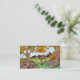 This business card features a cartoon illustration of an orange cat riding on the back of a duck-billed dinosaur, through a autumn forest. The back has a cartoon extinct critter (a gorgonopsid!) and space for your contact information. Give out this fun card to your clients and let the artwork encourage them to keep the card in their wallets!