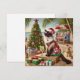 Cat Santa Dress for Christmas in July by beach Holiday Card (