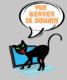 A funny cat on a computer getting panic because the pc crashed and he's saying: "the server is down".