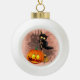 Cat Scared by Pumpkin Fun Halloween Character Ceramic Ball Christmas Ornament