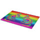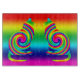 This colourful design features two kitty cats displaying rainbow colours in an abstract design with a twist. It results in a multi-coloured spiral or swirl of vibrant colours. This feline silhouette contains the seven main colours of the rainbow; red, orange, yellow, green, blue, indigo and violet. Some other colours that may also be seen are pink, cyan, and purple. The cats are sitting facing each other.