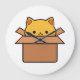 Cat sitting inside cardboard box large clock