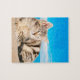 Cat Sitting on Tropical Island Beach Jigsaw Puzzle