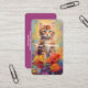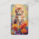 An oil painting of an adorable, cute kitten standing on colourful flowers. This is a business card for people that cat sit.