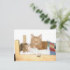 Orange tabby cat in bed with a doll staring at you as if daring you to comment about it photo postcard